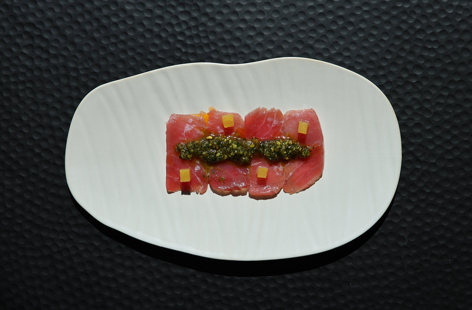 Restaurant experience and interior design for a restaurant nested in the hills, with a focus on views, creative cuisine, and romantic experiences.